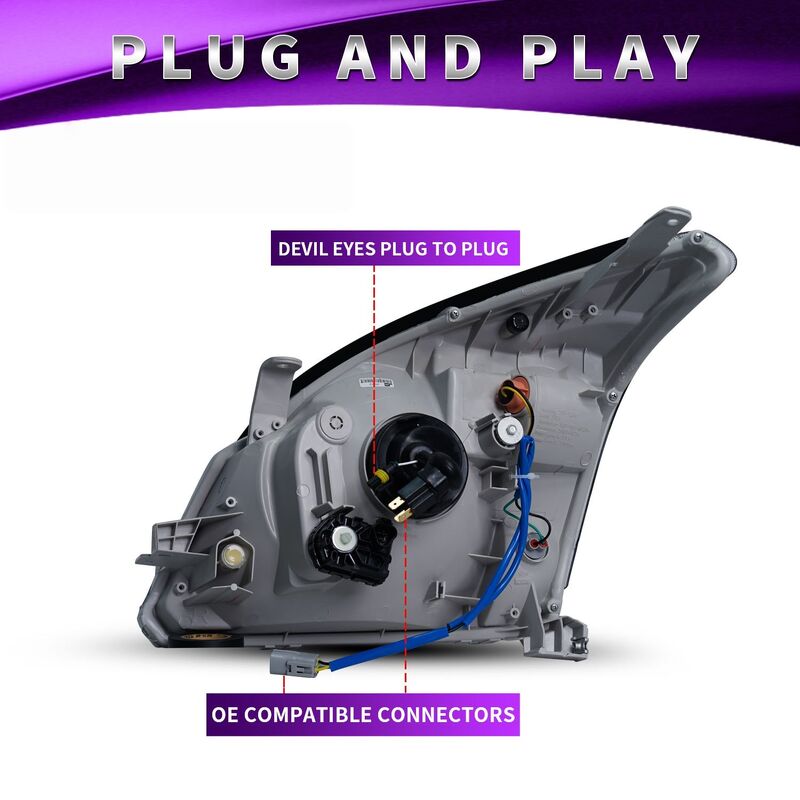 3D Demon Eye Full LED Sequential Blinker Headlights Fit For TOYOTA PRADO FJ120 2003-2009
