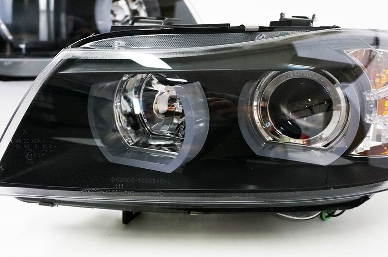 Black 3D LED DRL Angel-Eyes Projector Head Lights Fit For BMW 3-Series E91 E90 Sedan 2005-2008