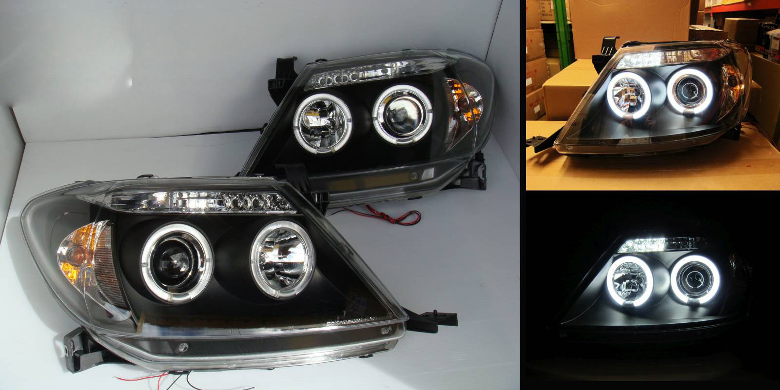 Upgrade the lighting on your Toyota Hilux Sr5 2005-2010 with this Black LED Halo Projector Headlights Fit For Toyota Hilux SR5 2005-2010. Designed as a high‑quality replacement, it offers improved visibility and a modern look while maintaining compliance with road standards.