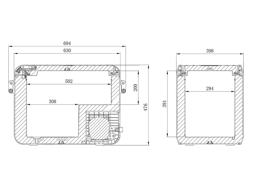 720mm (28.4") L x 455mm (17.9") W x 480mm (18.9") H