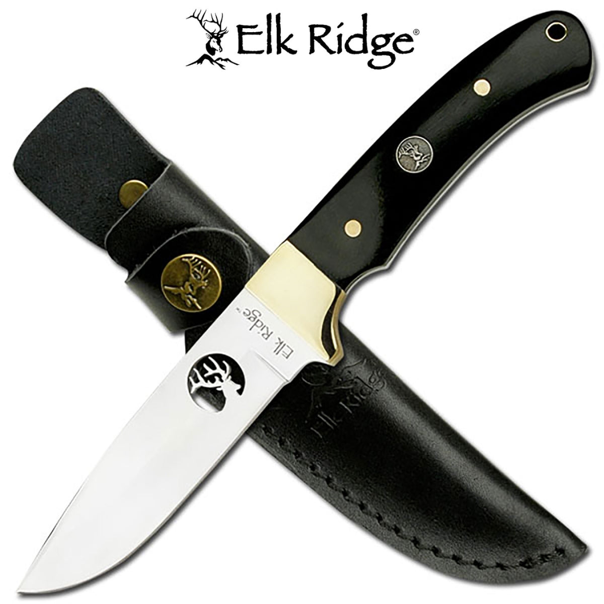 Built for hunters and outdoor enthusiasts, the Elk Ridge Fixed Blade Knife combines durability with a classic design. Featuring a full tang 3Cr13 stainless steel drop point blade, this knife offers excellent strength and edge retention. The sleek black wood handle provides a secure grip, complemented by brass bolsters for added elegance. Complete with a genuine leather sheath, this knife is a must-have for any hunting or camping trip.