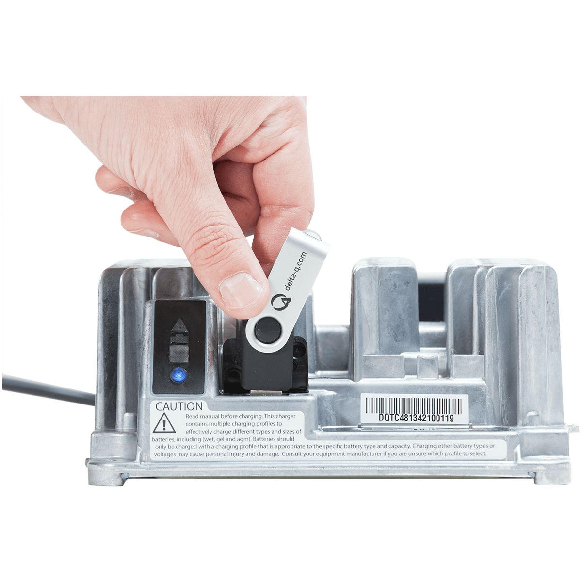 Optional CAN bus communication enables a link between the charger and other components, providing for safe lithium-ion battery charging, and machine diagnostics and servicing information. IC Series chargers store charge cycle data, which is accessible using their built-in USB host port. Through the host port, software updates and new charge profiles can be installed using a pre-programmed USB flash drive.