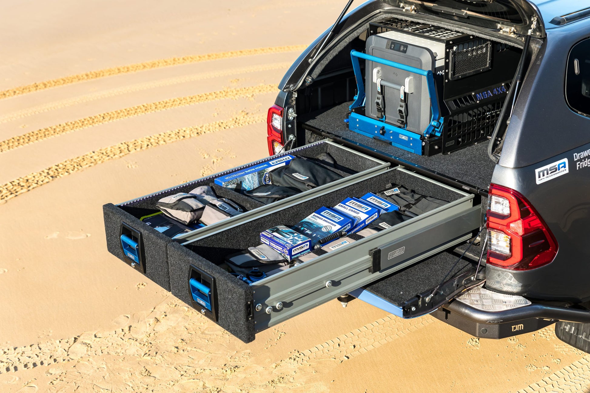 MSA 4X4’s Storage Drawer Systems are designed with a patented slide technology offering a smoother opening under heavy loads. The entire drawer extends further from the frame, allowing 100% access to the drawers. No more hard-to-reach items at the back! MSA 4X4’s Storage Drawer Systems are constructed with aluminium and have anodised aluminium components. Super-strong, lightweight and comes with stainless steel fasteners used throughout for a rust-free, corrosion resistance lifetime of use.