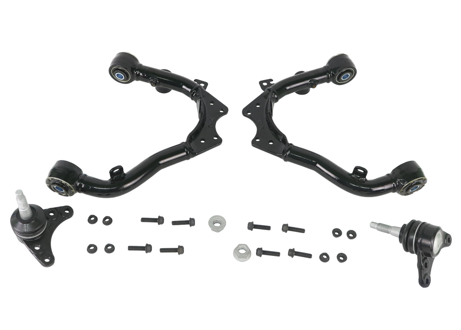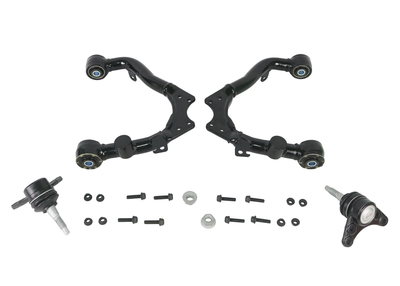 Benefit Note: A short fall of the modern day IFS 4wd is the adjustment range provided for successful wheel alignments, this becomes even more of an issue when the vehicle is lifted by more than 1 inch. Not only does the vehicle run into camber and caster issues, but ball joint articulation and clearance issues to the coil over strut at ride and droop height. The new Whiteline offset UCA (Upper Control Arm) is an all-in-one solution for any vehicle that has been lifted between 30mm and 70mm. Providing an increase between +2.5 and +3.5 degrees of caster and up to 1.5 degrees of negative camber increase (figures quoted are based off an approximate 50mm/ 2 inch) along with greater clearance to the coil over strut and more articulation of the arm by virtue of new maintenance free GIIRO bushing technology.
