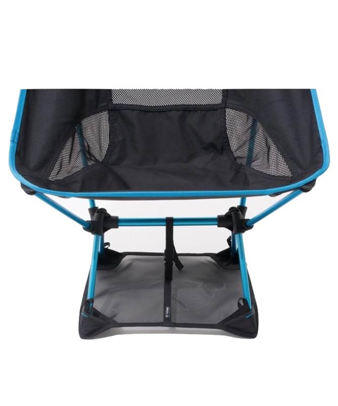 The Ground Sheet prevents the Chair from sinking into soft grounds, snow or the beach. The chair legs slide into the reinforced corner pockets and the Ground Sheet can be secured to the chair with the centre attachment. It can be folded and packed together with the chair.