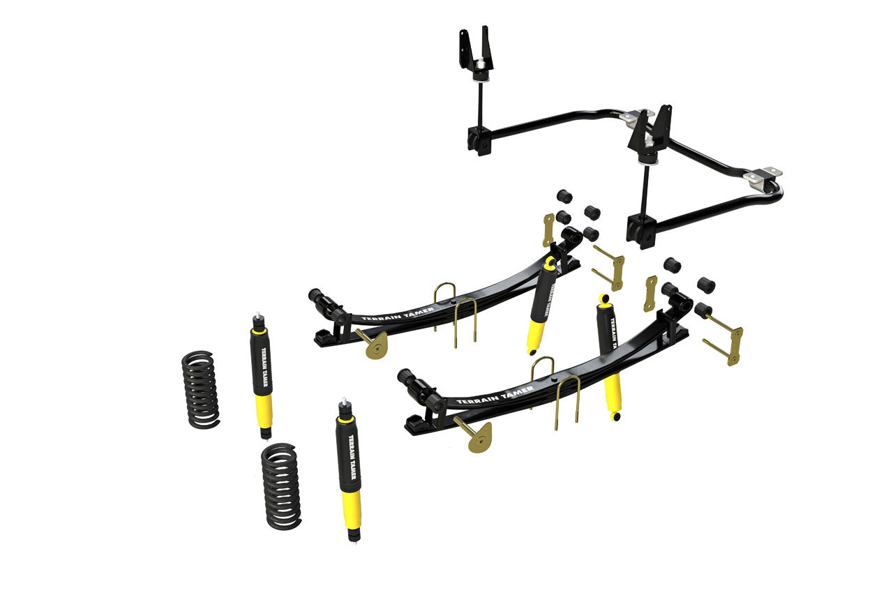 NOTE: TTCS-2306T NOT RECOMMENDED FOR DUEL CAB THIS IS A PRE- REGISTRATION GVM UPGRADE KIT AND CAN ONLY BE FITTED BY TERRRAIN TAMER PRE-APPROVED FITTERS FOR LEGAL REQU IREMENTS PRICE DOES NOT INCLUDE $400.00 ONLINE SSM APPROVALS