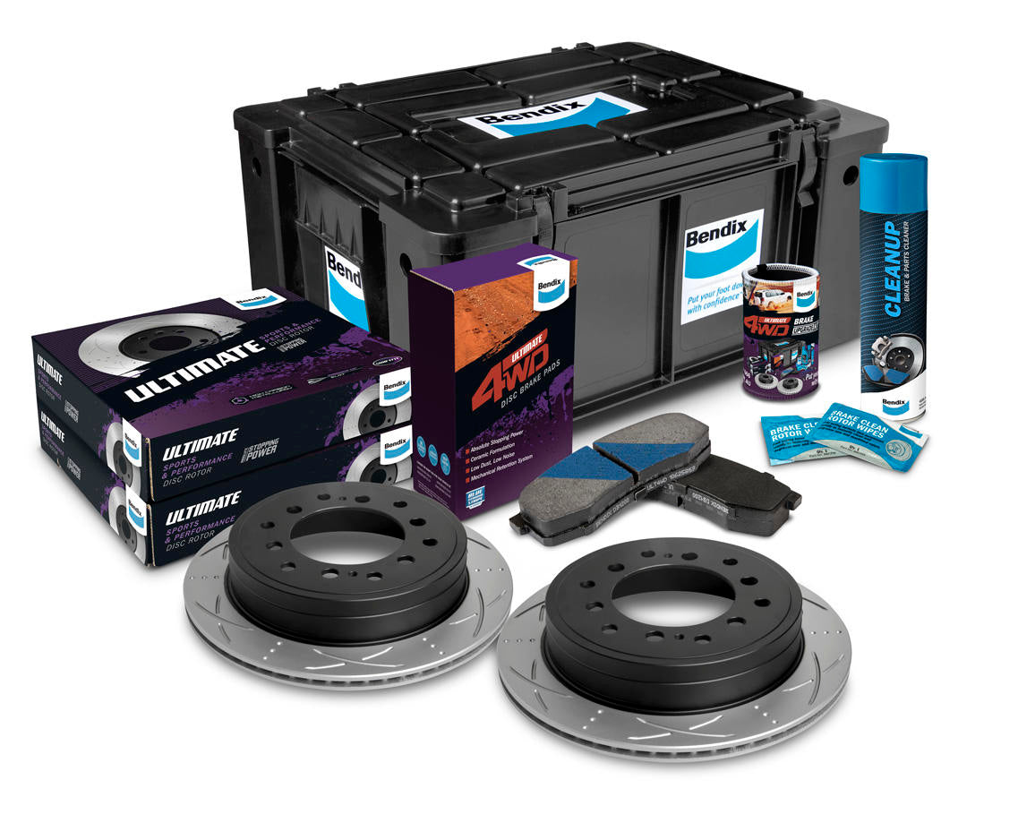This comprehensive kit includes specially compounded high performance front ceramic material brake pads for increased stopping power in extreme conditions, plus the latest Bendix Ultimate front rotors designed and developed specifically for Australia's demanding conditions.