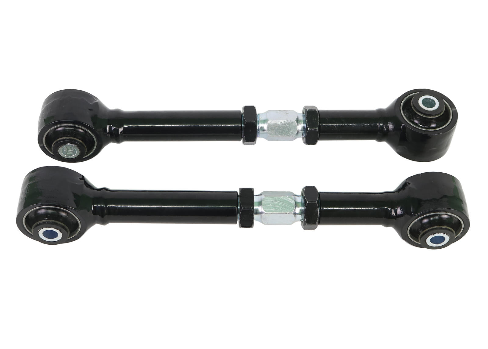 Heavy duty turnbuckle adjustable trailing arms provides incremental on car adjustability of differential pinion angle. This allows you to dial in more or less traction under heavy acceleration. Best matched with Whiteline's heavy duty lower trailing arms for optimum performance.