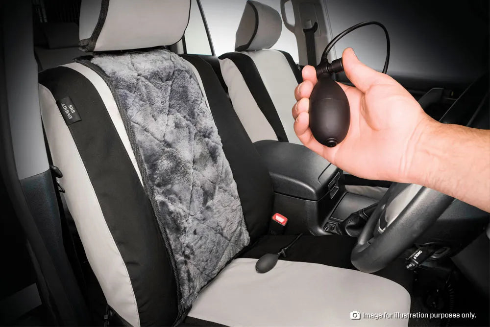MSA 4X4’s Patented Sheepskin Air Lumbar Support System provides adjustable support where and when you need it most! The system has been designed for quick and easy installation, allowing you to transfer it between different vehicles with ease. With a fully adjustable air inflated bladder insert, you can position the support to suit you perfectly. You can even install up to 4 bladders for multiple support zones, the bladders attach internally with Velcro. As we are all different, the air valve allows you to inflate as much or as little air support to suit your day. Whilst also using the additional back support whilst sitting, take breaks where possible to allow you to stretch and walk around a bit. Whilst an MSA 4X4 Adjustable Lumbar Support won’t cure any underlying conditions, its simple design is inexpensive and can provide short-term relief during car rides.