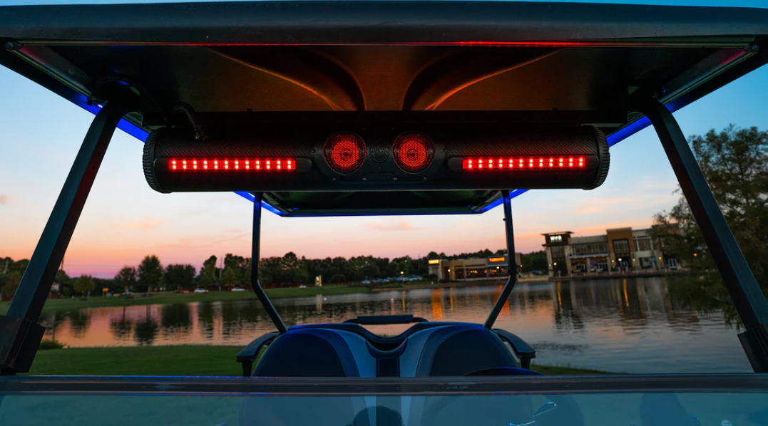 - Rear Facing dual 160 Lumen LED light bar can be turned on separately from the speaker LED’s. LED light bar can be white, red or yellow.