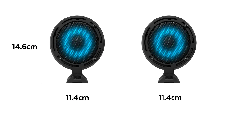 - Multi-color LED’s backlight all 8 speakers: chose from red, green, blue, white. Sync to music, solid color on or off.