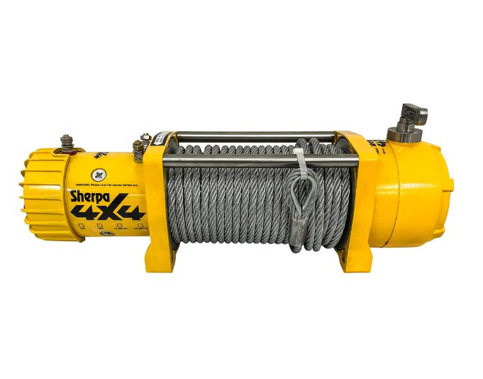 The new model Sherpa 4x4 17,000Lb heavy duty winch is ideal for the tough pulls and is the most popular model supplied. Huge 6.6HP motor coupled with a 3 stage planetary gearbox makes this unit incredibly powerful. The winch is ideal for those running heavier 4x4's or towing boats and caravans. Available in 12V or 24V with a genuine Albright solenoid as well as 28m or 45m spools and rope or cable options. The 28m version is designed to bolt directly into common winch bars without any modifications so is a great option for customers considering a powerful and reliable winch.