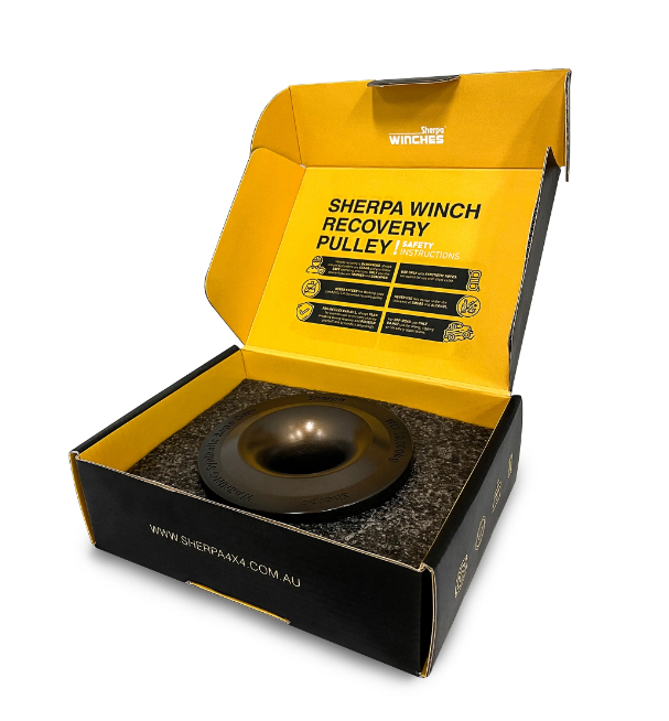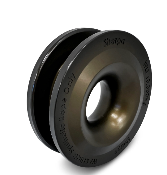 This is a genuine Sherpa friction pulley designed to be used with synthetic winch ropes to increase the power of your winch. Use as an alternative to traditional heavy snatch blocks / pulleys. Compatible with synthetic winch ropes in the 8-12mm size range.