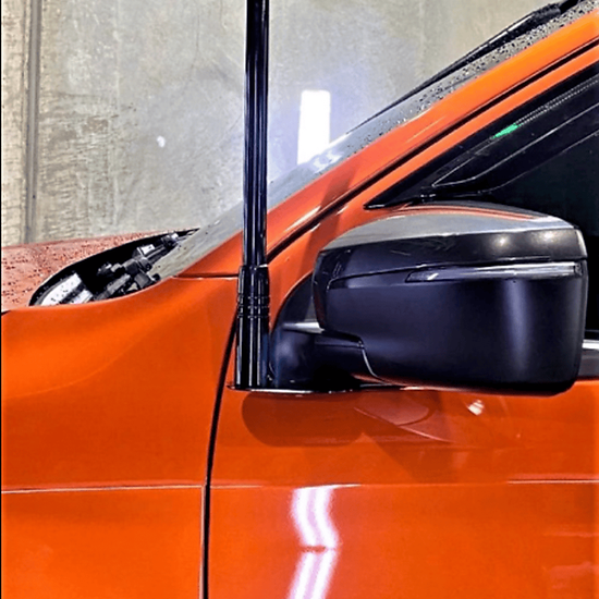 Vogue Industries Aerial Bracket to suit the Isuzu MU-X 2022+. Our Aerial bracket is mounted on the passenger side mirror. This product has only been designed to work with factory mirrors (I.E. not aftermarket towing mirrors). Our bracket works with the automatic folding function.